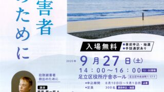 回覧板 拉致被害者救出のために 日時:2025年9月27日(土)14:00~16:00(開場13:00)場所:足立区役所庁舎ホール(足立区中央本町1-17-1)内容:入場無料のイベントで、手話通訳があります。参加方法:事前申込と抽選が必要で、定員は300名です。申込期間... 2025.08.07 回覧板