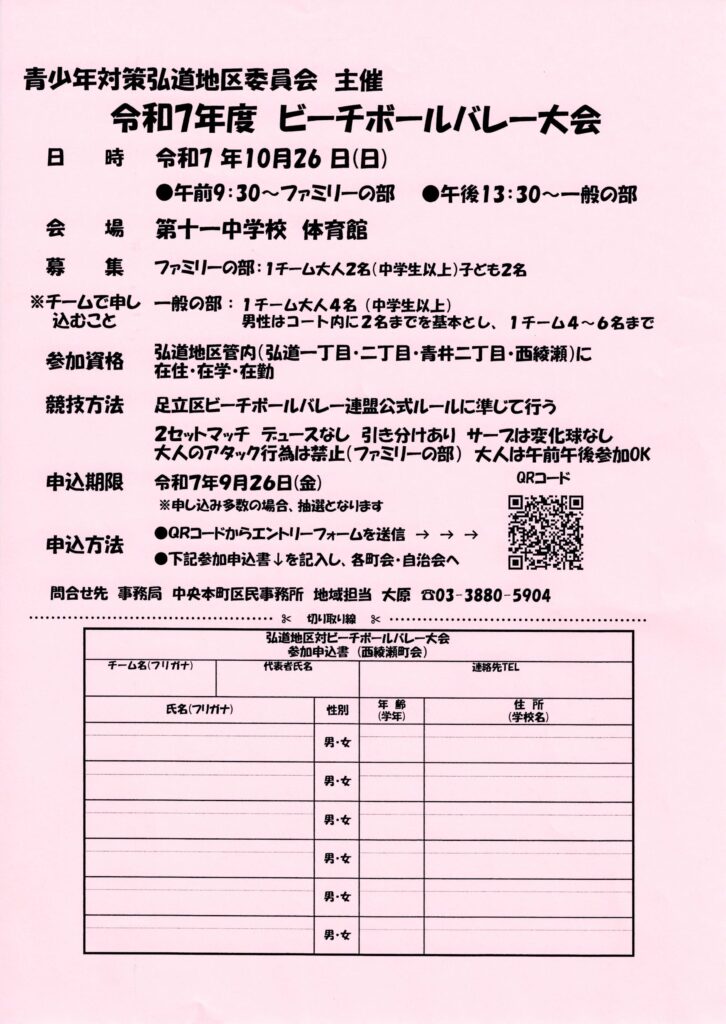 弘道地区管内(弘道一丁目・二丁目・青井二丁目・西綾瀬)に在住・在学・在勤