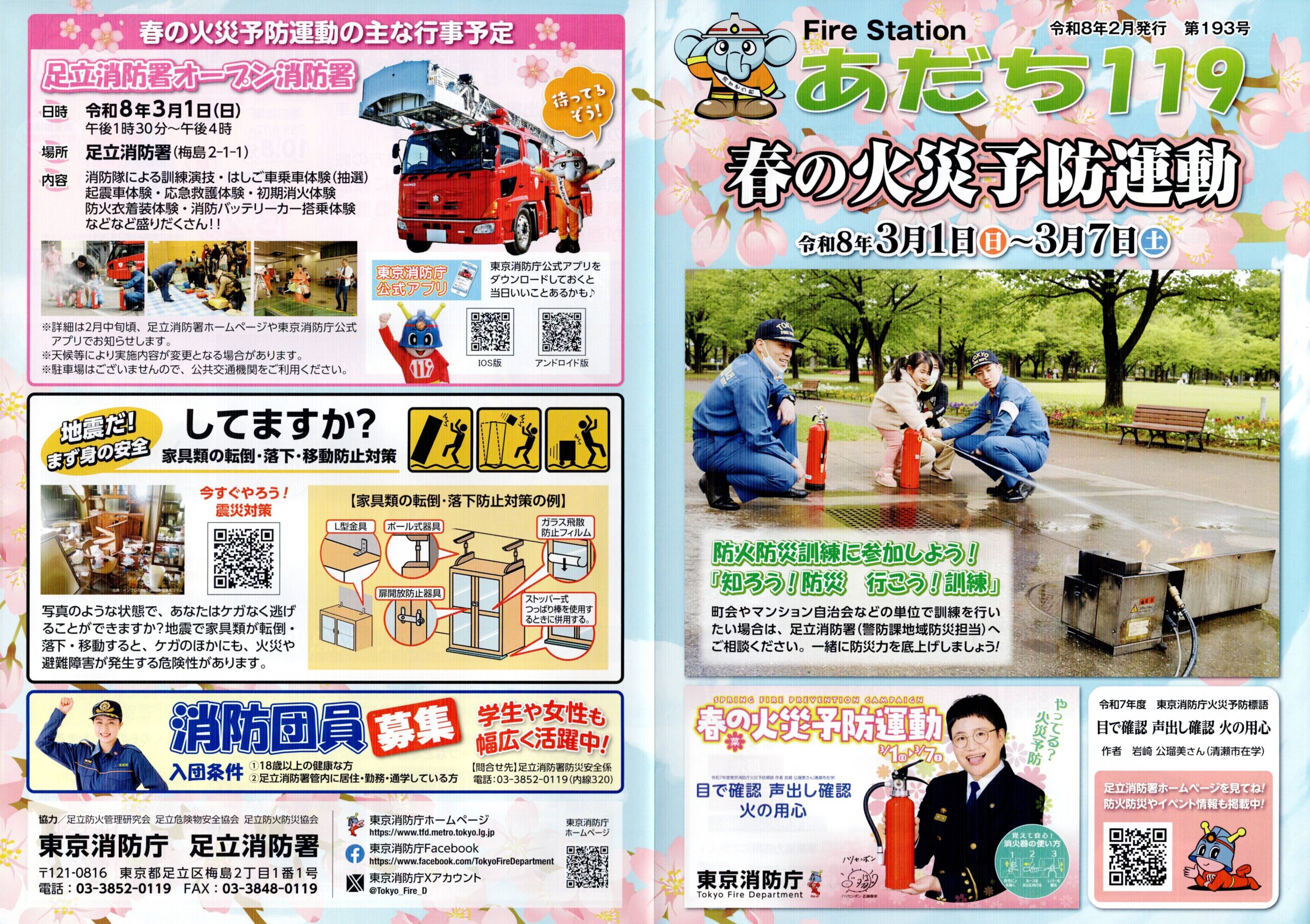 春の火災予防運動 回覧板 2026.02.22 3月1日より3月7日まで春の火災予防運動が実施されます。 東京消防庁特設ページ 東京消防庁東京都23区及び多摩地区(稲城市を除く)を管轄する消防機関、東京消防庁ホームページです。 防災館 防災館 東京消防庁 都民防災教育センター