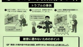 回覧板 だまされないで!通信47号 被害に遭わないための3つのポイント 1 事前に作業内容や料金を確認し納得できない場合はきっぱりと断る 2 信頼できる事業者に事前に相談んしておく 3 賃貸契約の場合はオーナー・管理会社へ相談する 2026.03.23 回覧板